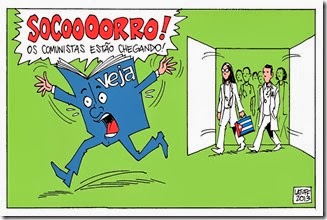 “Um grupo de médicos protestava ontem na frente do Ministério da Saúde contra o programa Mais Médicos, que abre postos de trabalho para médicos estrangeiros. O grito de guerra: “Somos ricos, somos cultos. Fora os imbecis corruptos“.